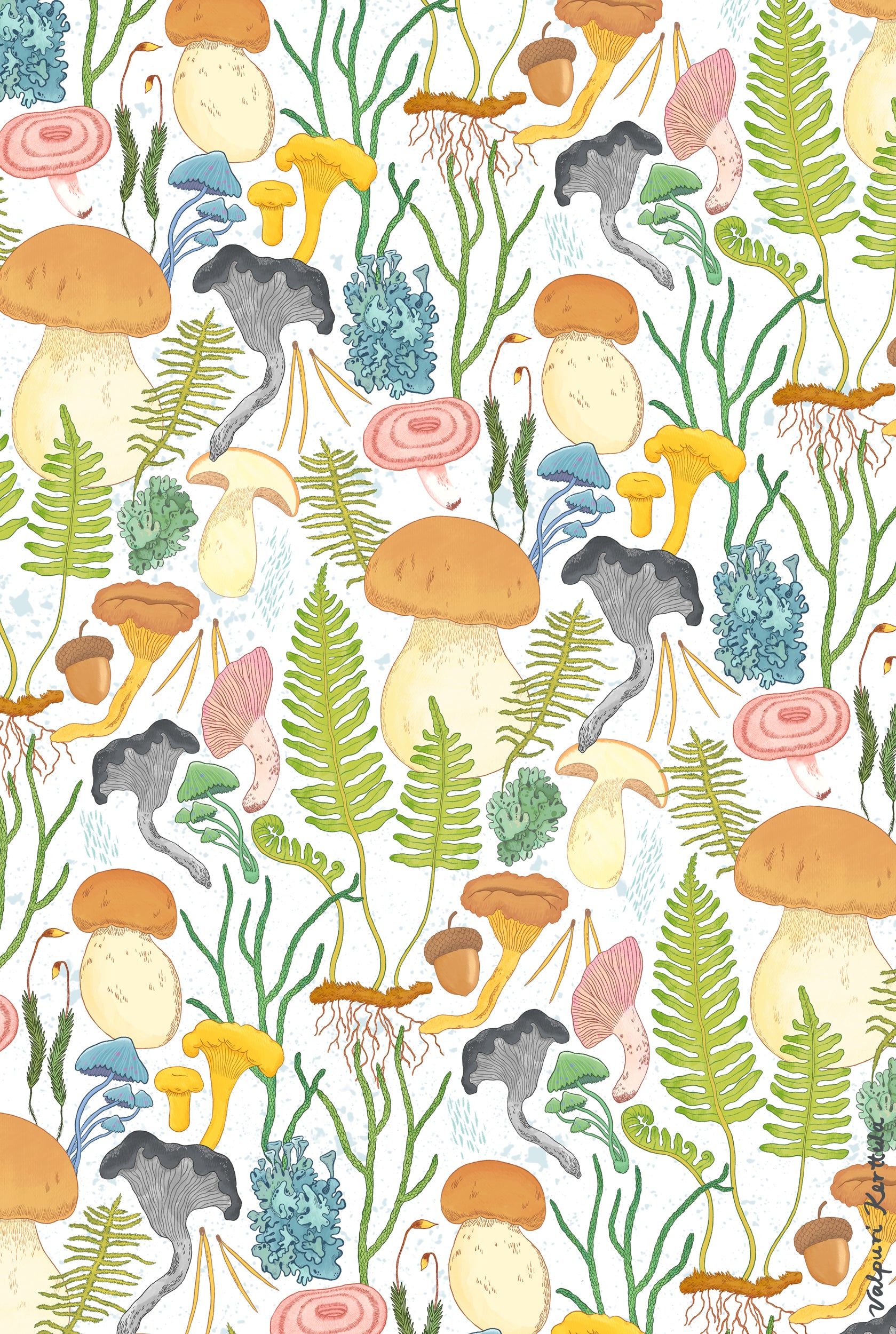 Mushroom Forest kitchen towel by Valpuri Kerttula, an illustrator and artist based in Lahti, Finland.
