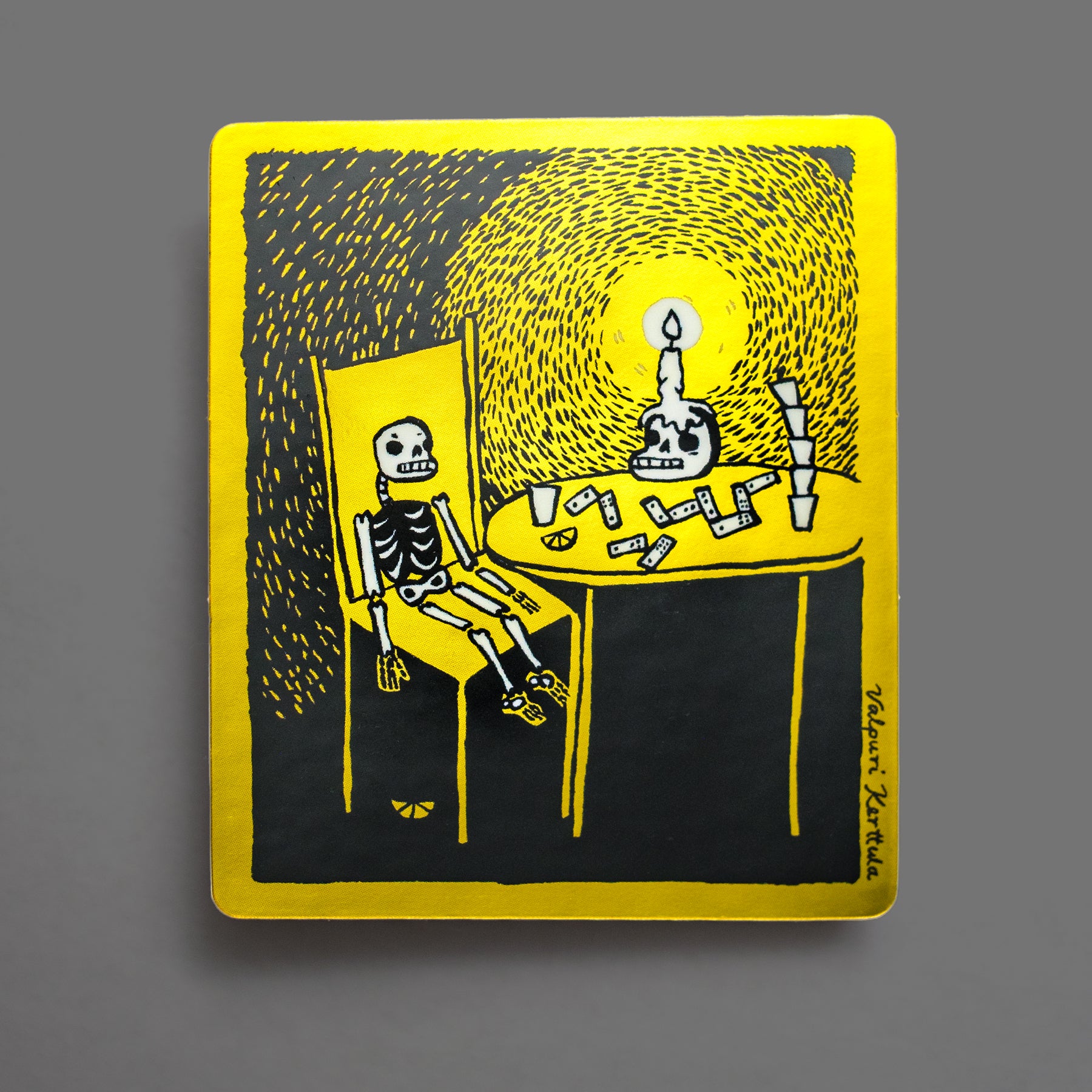 Under The Volcano vinyl sticker with a golden holographic finish.